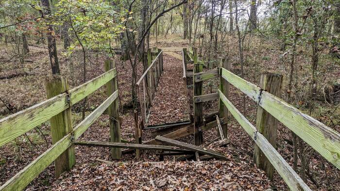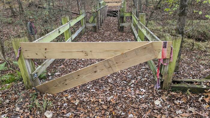 Most of the boardwalk and bridge sections along the trail were boarded off...