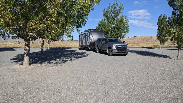 The Lions club in town maintains a free (donations welcome) RV park where we stayed. It was just a large gravel lot with a few trees interspersed, but it provided a quiet and pleasant spot to spend a night. Conveniently, there was a park across the street that had a riding arena (saw some kids riding horses in the arena) with a dump station for RV use