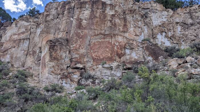 One day, we visited the state park museum which had an interesting display of Indian artifacts. When construction began for I-70 back in the 1980's, much of the hillside was excavated to use for fill for the new interstate. In the process, the remains of a large Indian village was found. Archeologists came in to quickly recover what they could, and Fremont Indian State Park was created to commemorate the village. In addition to touring the indoor exhibits, we walked around outside to view some of the rock art left by the Indians on the canyon walls.