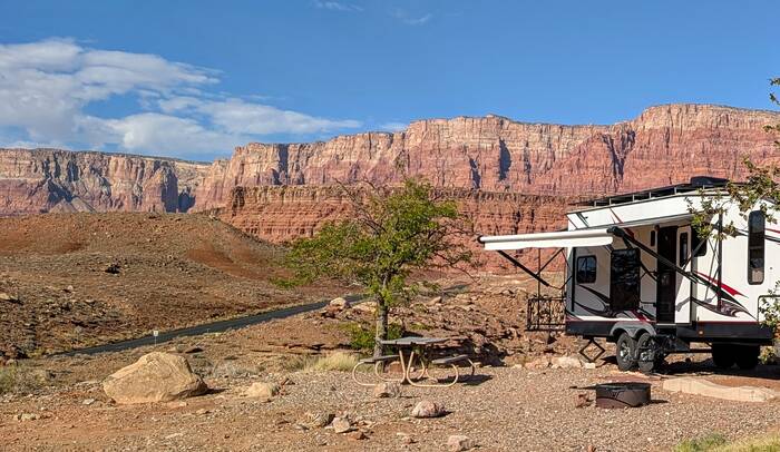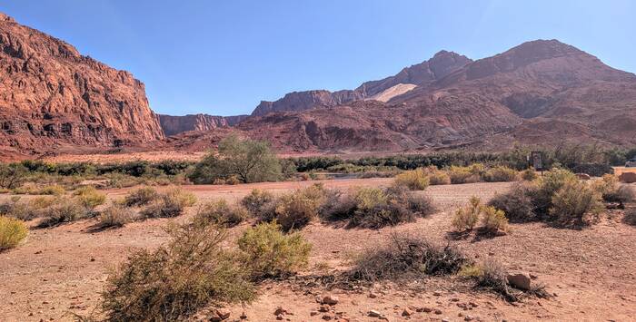 We stayed as Lees Ferry, a first-come-first-serve campground that had quite a few campsites available when we arrived around 11:30 in the morning.