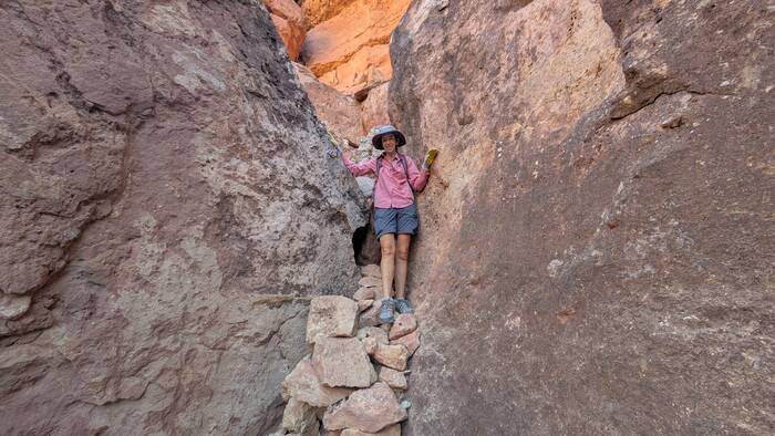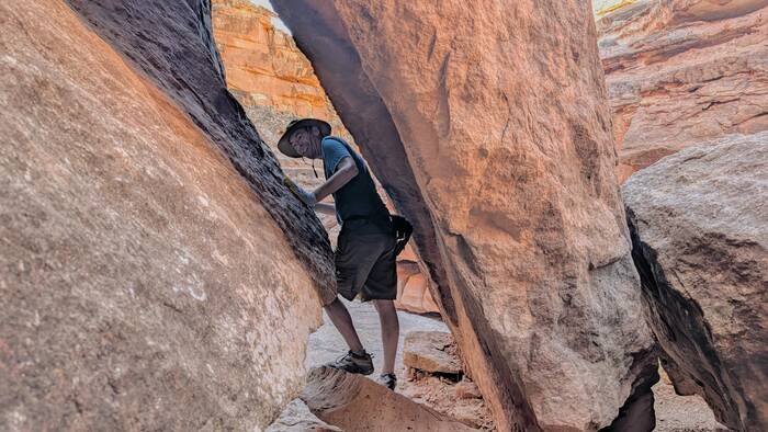 We ended up making a wrong turn that resulted in us climbing over this precarious rock. We didn't notice that there wasn't anything under the rock until after Julie had gone over it. She didn't tell Rick until he got past it. 😉