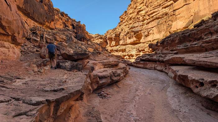 Finally got to the bottom! But, this canyon was going downhill toward the Colorado River, so the bottom kept dropping out on us.