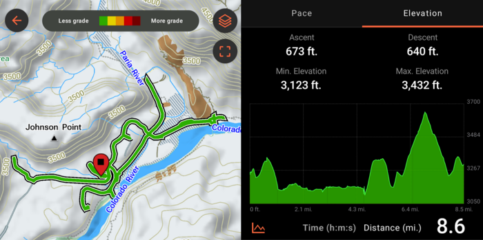 There's our first glimpse of the Colorado River. It was fascinating to see how some of the cliffs had just crumbled into heaps of rubble over time.