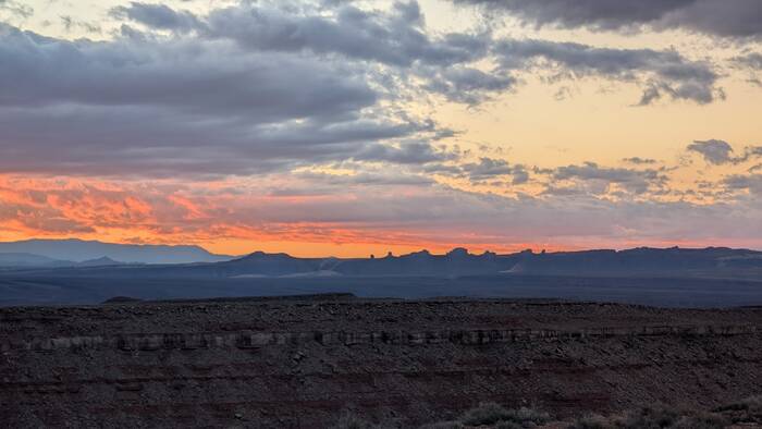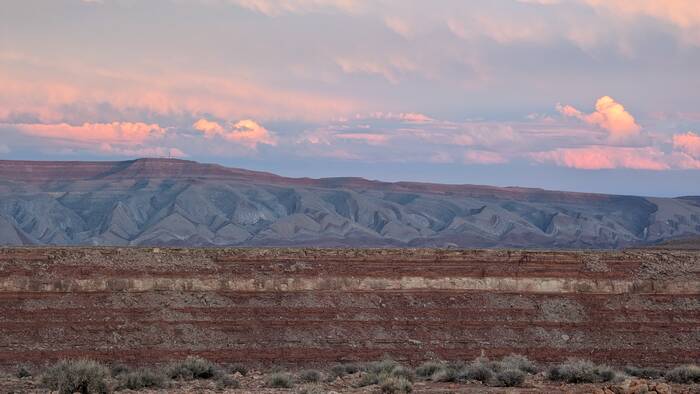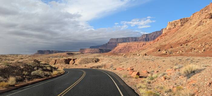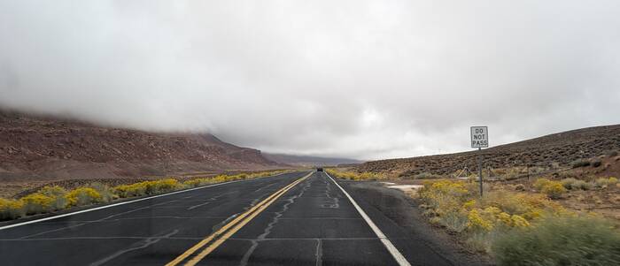 Leaving sunny Glen Canyon National Recreation Area to drive into the gloom