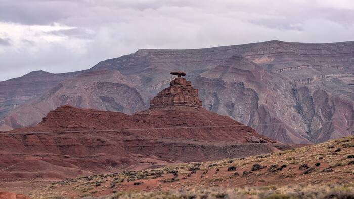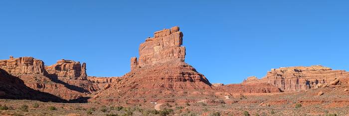 We passed through the tiny (and not particularly photogenic) town of Mexican Hat. Its main claim to fame is being near this rock formation that resembles a guy wearing a sombrero. The "hat" apparently measures 60 feet across.