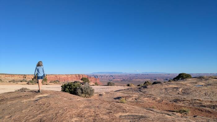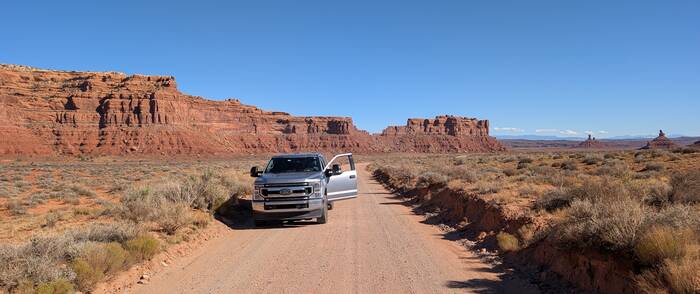 On Thursday, we drove the nearby Valley of the Gods Scenic Drive and then up the Moki Dugway. Julie has always been enamored with the iconic red rock scenery of the Southwest, so she had a hard time refraining from taking pictures at every turn.