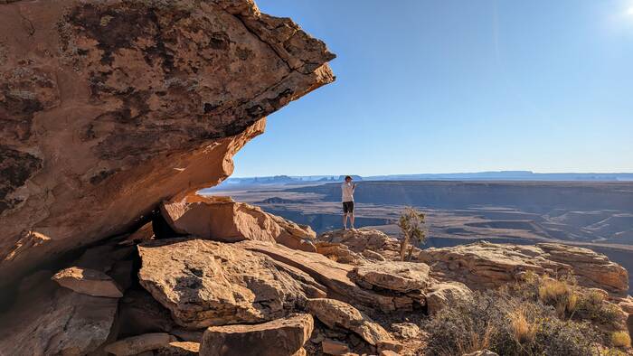 Here, Rick was determined to find a way down to a lower plateau to get "better" views.