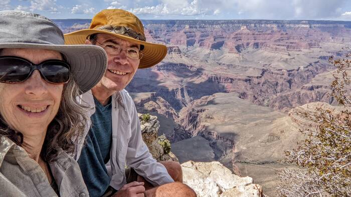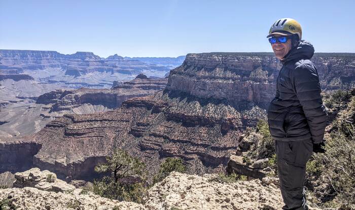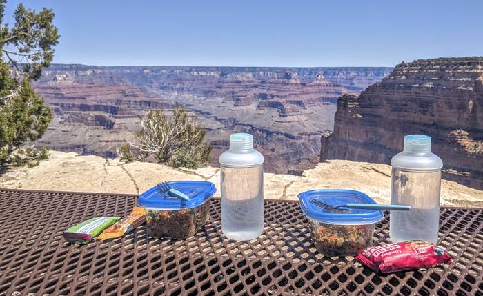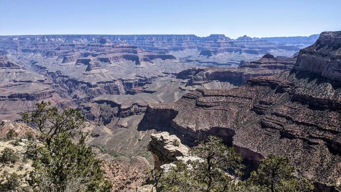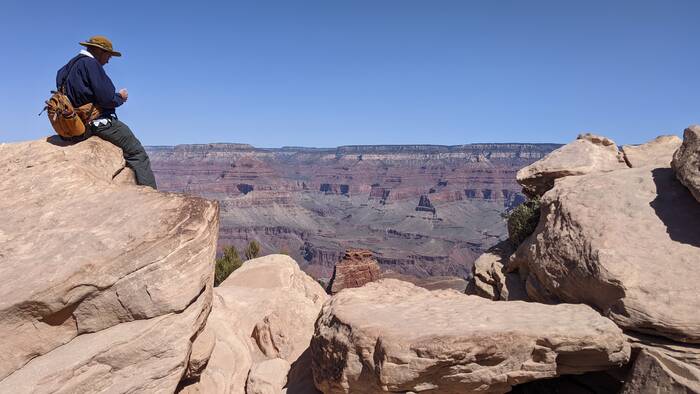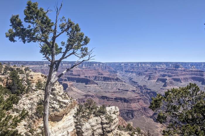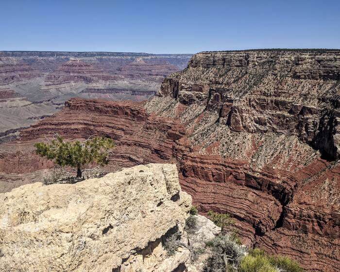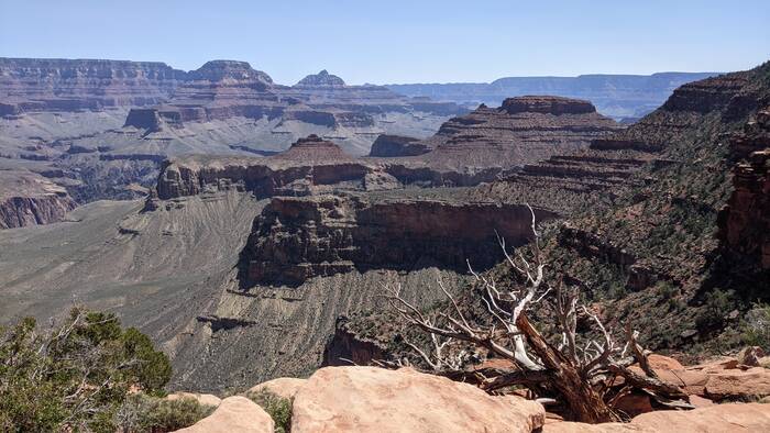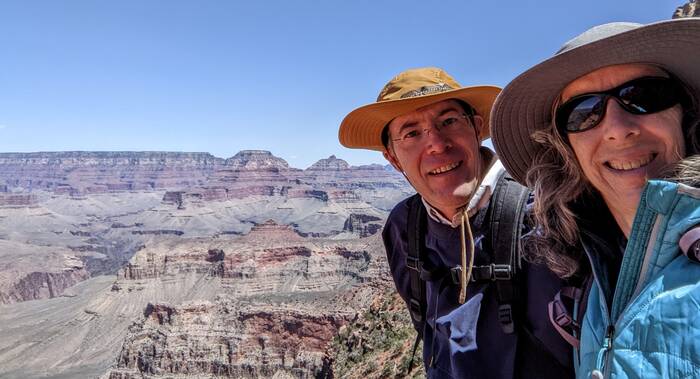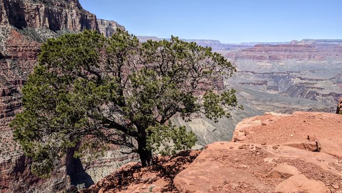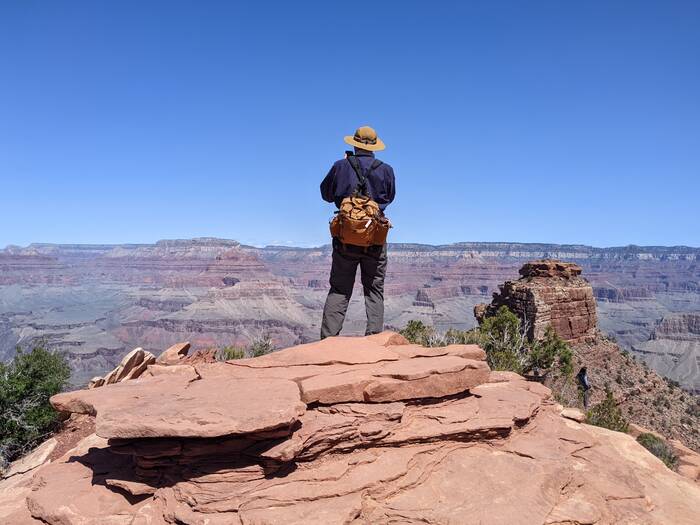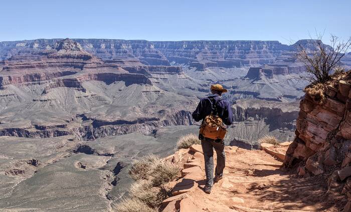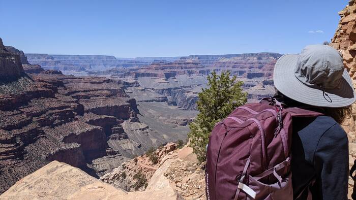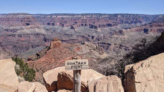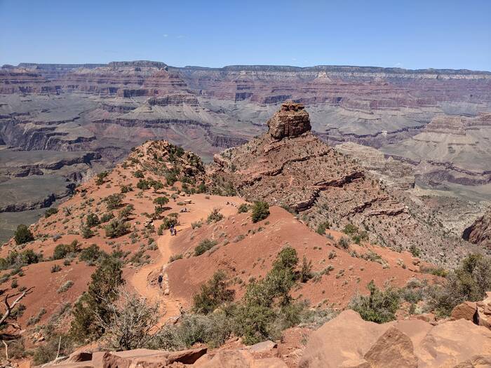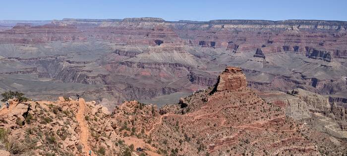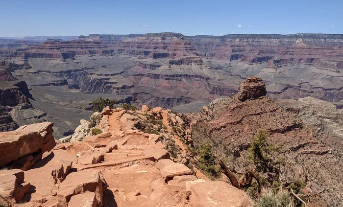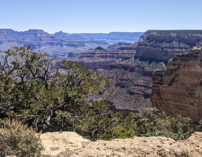 The south rim of Grand Canyon National Park has a great shuttle bus system, and there was a stop right off our campground that took us the next morning to the South Kaibab trailhead (with one connection). Aside from it being quite windy at times, the day was beautifully clear, and we enjoyed the hike immensely. Even though it was less than 3.5 miles - it did include over 1000 feet of descent which made it quite challenging.