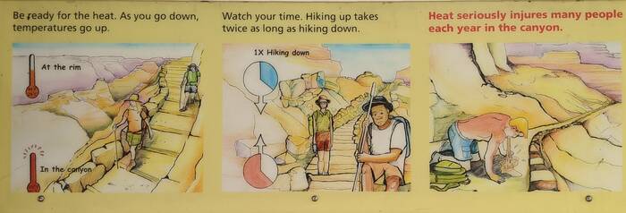 Upon reaching the visitor center, we discovered that it was closed until Thursday (today was Monday), but they had a lot of good information about the hiking trails in the outdoor plaza. The trail we saw earlier from a distance was called the South Kaibab Trail, and we were convinced to take that hike the next day.