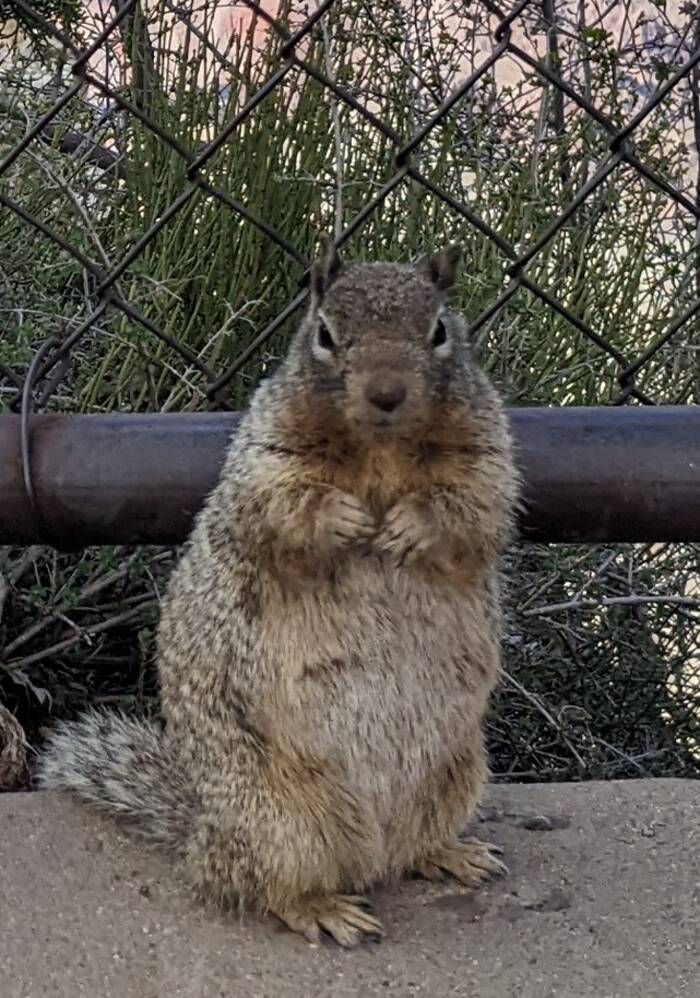 Fattest squirrel ever. Many people ignored the prolific signage not to feed the squirrels.