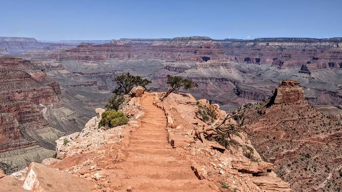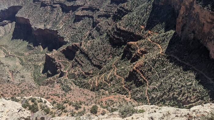 Looking down at the Bright Angel Trail--the first-built trail down to the bottom of the canyon