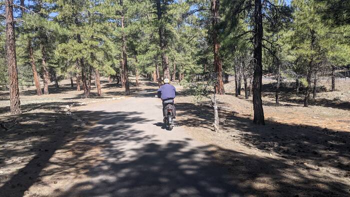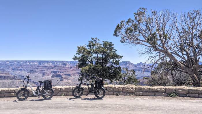 The South Kaibab trail was an awesome hike, but we were pretty tired by the time we got back to the camper. The next day, we decided to take it a bit easier and opted for a bike ride to the western half of the park. We enjoyed a nice combination of paved trails and roads closed off to car traffic. Having e-bikes was definitely the way to go. We encountered one scenic view after another, and the 23 miles breezed right by.