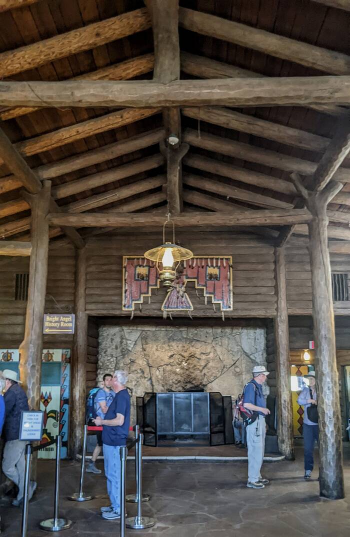 The lobby of Bright Angel Lodge, built in the 1930s