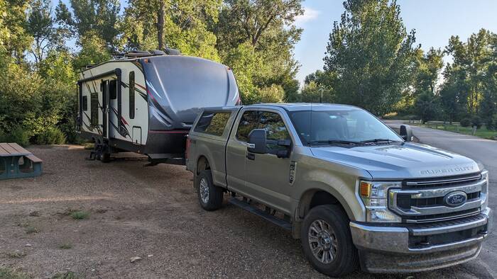Shortly after pulling in to this campsite, we became quickly reacquainted with Midwest humidity and insect life. For the last several months, we had been blissfully free (mostly) of these nuisances. We thought that Montana was a little early to be having to deal with this, but then we realized we were only a few miles from the North Dakota border.