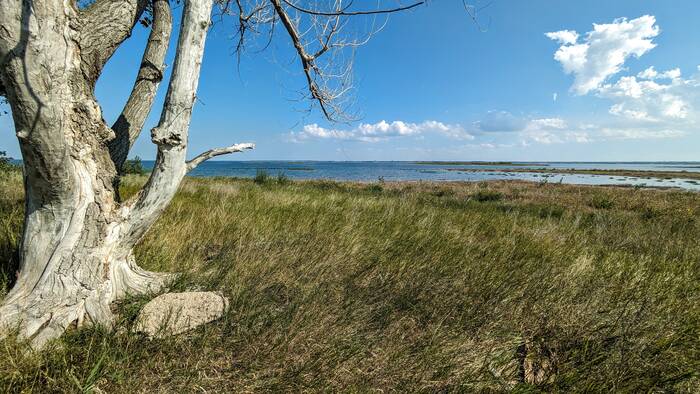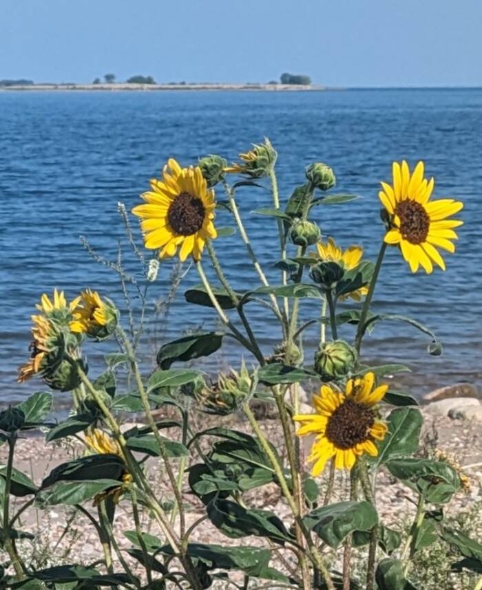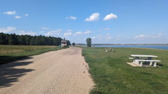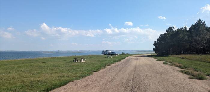 Our next destination was a free recreation area on Lake Sakakawea, formed by the damming of the Missouri River. What a beautiful setting this was right on the lake! And if that wasn't awesome enough, we had the entire recreation area to ourselves, with only the waterfowl and occasional boater as company. Oh, and the flies and yellow jackets--they provided us with a considerable amount of company as well.