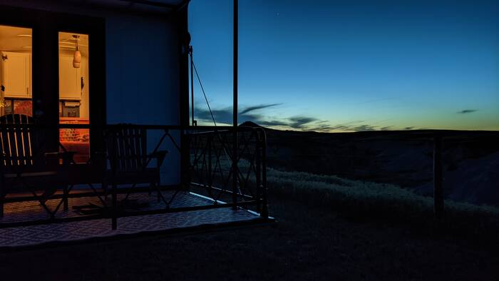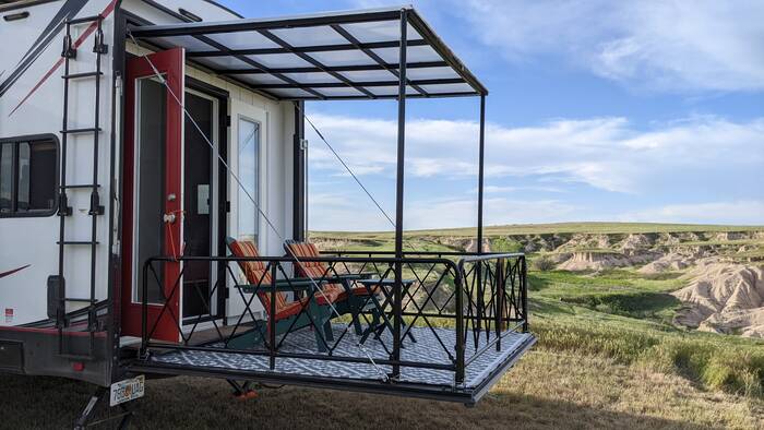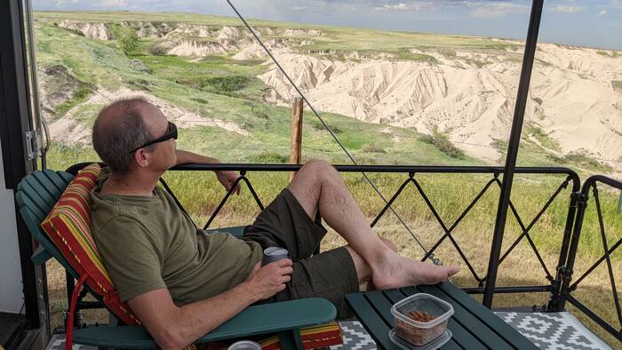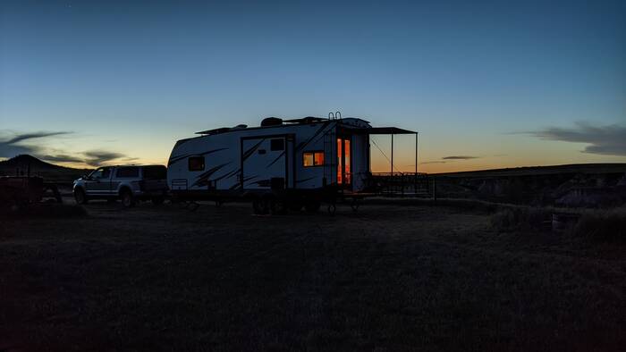 Campground Notes: We had a very pleasant and private dry camping site overlooking the National Grasslands. The drive in on the long gravel road stirred up a lot of dust that managed to find its way into the camper. Upon leaving after the rains, our camper was caked in mud in spots. The views and quiet more than made up for that bit of inconvenience.