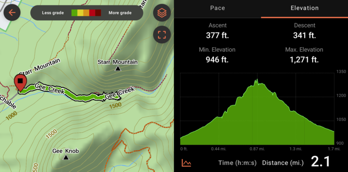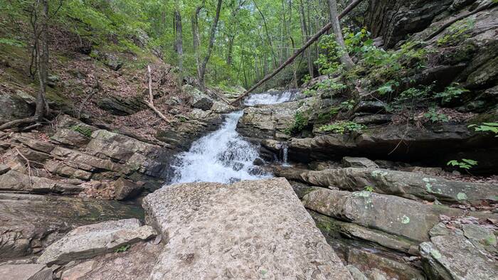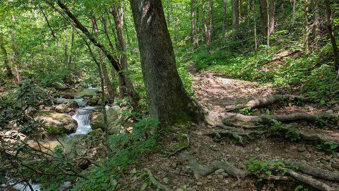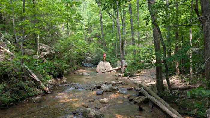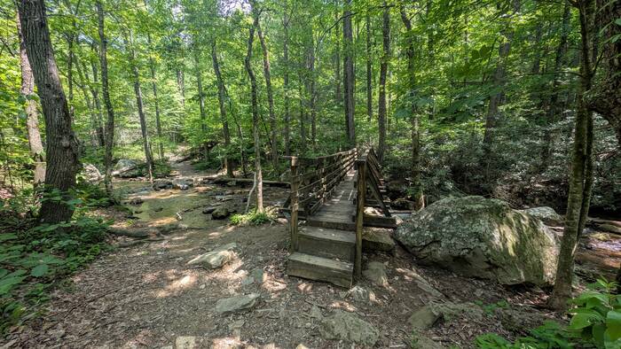 The trail continued for a short distance on the opposite side of the creek. Rick tried to scout out a "Julie friendly" way to cross without getting wet feet, but didn't find one that Julie approved of.