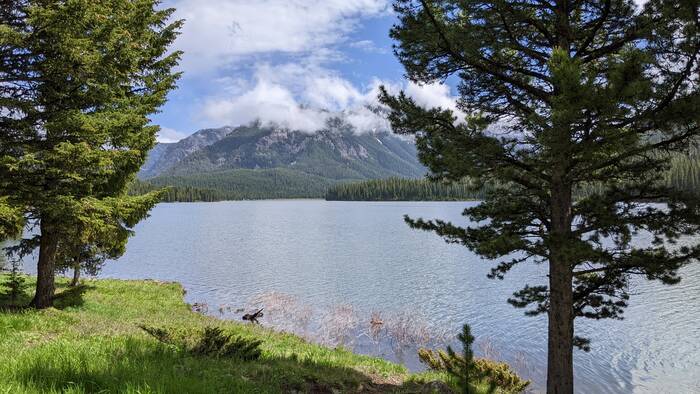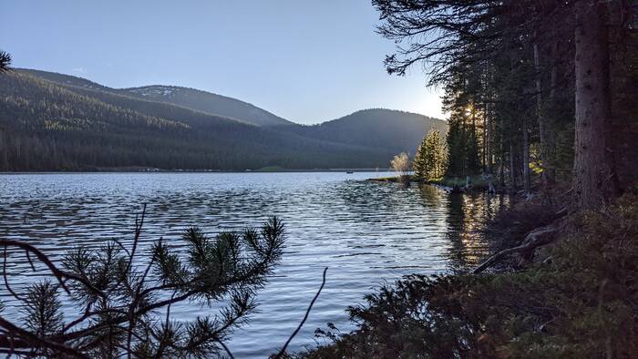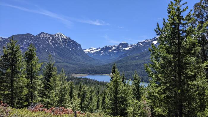 A view of Hyalite Reservoir from the campground on the way to the trailhead