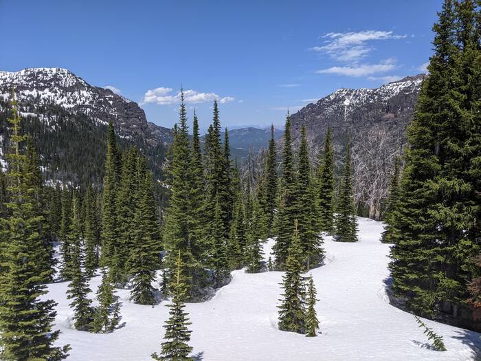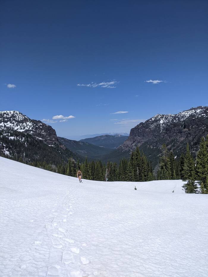 Thursday was the Hood Creek Trail which had spectacular views of the surrounding mountains as well as a scenic meadow. The trail was made more exciting by the amount of snow covering portions of the trail. Unfortunately, Audrey was feeling under the weather and didn't join us on this hike. Instead, she had a relaxing time hanging out by the lake (Hyalite Reservoir).