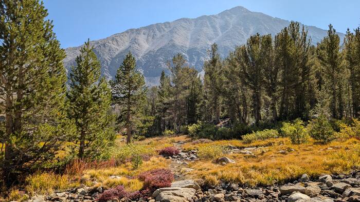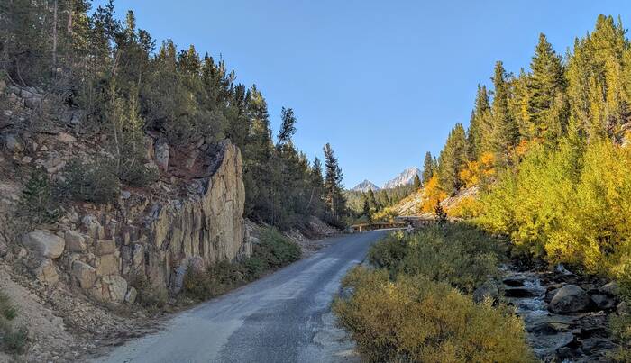 In high summer, the Little Lakes Valley Trail is quite popular, and people online said to get there by 7:30 am to get a parking spot. We didn't want to get up that early, so we got to the trailhead around 9:30, and there were still ample parking left this time of year.