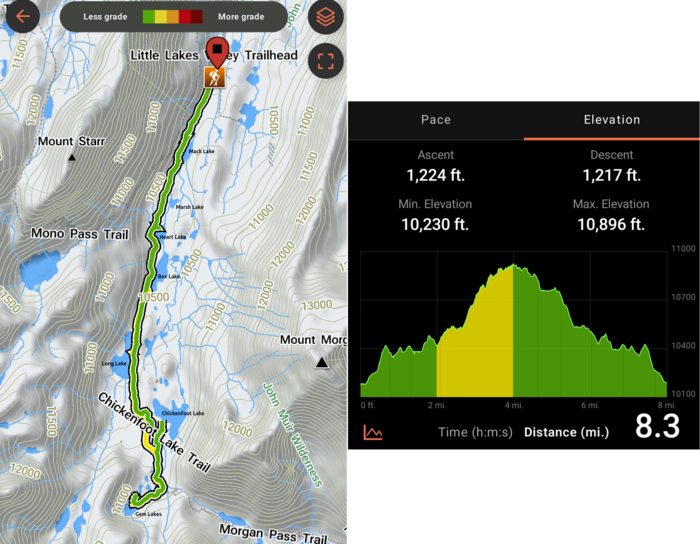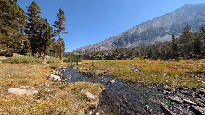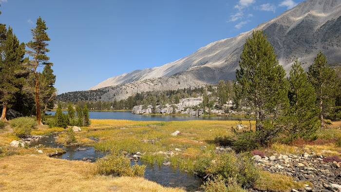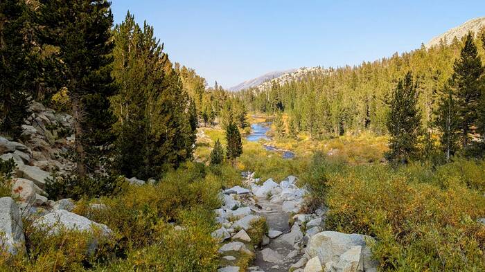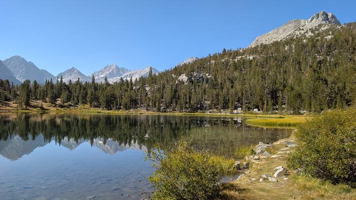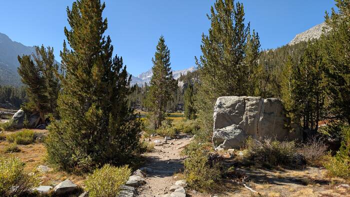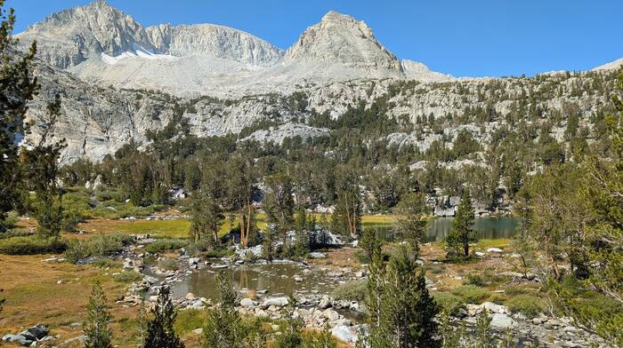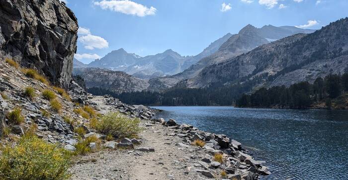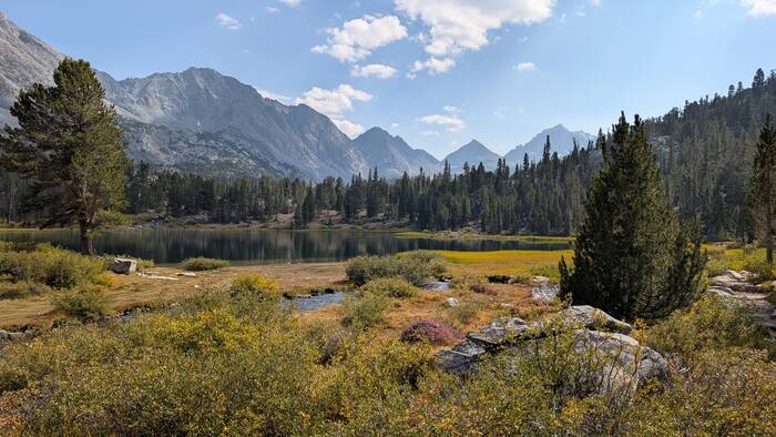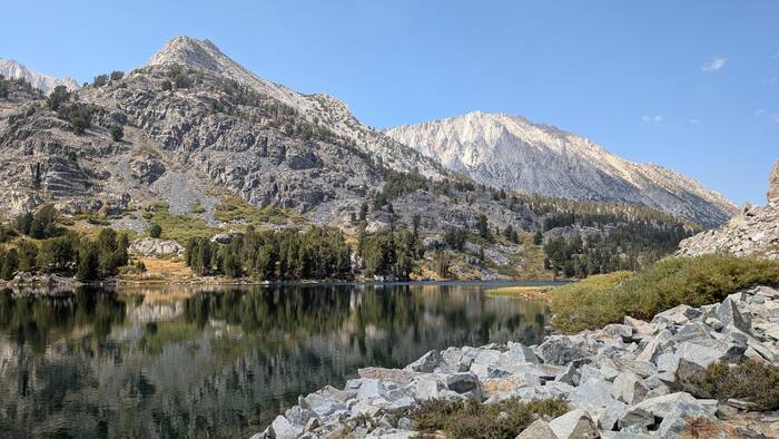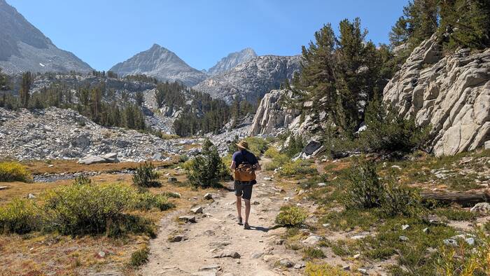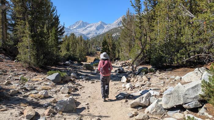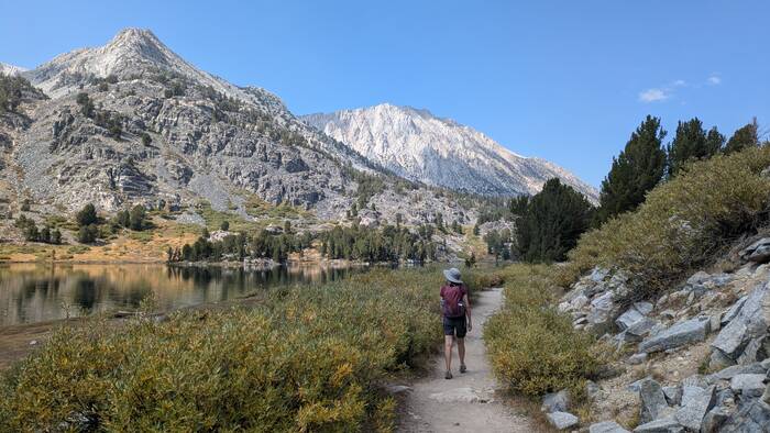 The day after arrival was forecast to be gorgeous, sunny, high in the 70s, and with minimal haze, so we found us a good hike in the John Muir Wilderness called Little Lakes Valley Trail. You can't go wrong with a hike with that name!