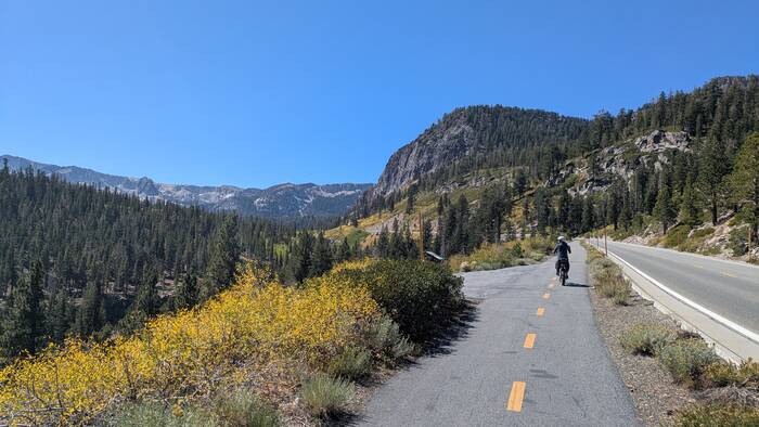 Our last day was such a pretty day, that we decided to go back to Mammoth Lakes and ride their bike trail that weaved through the lakes.