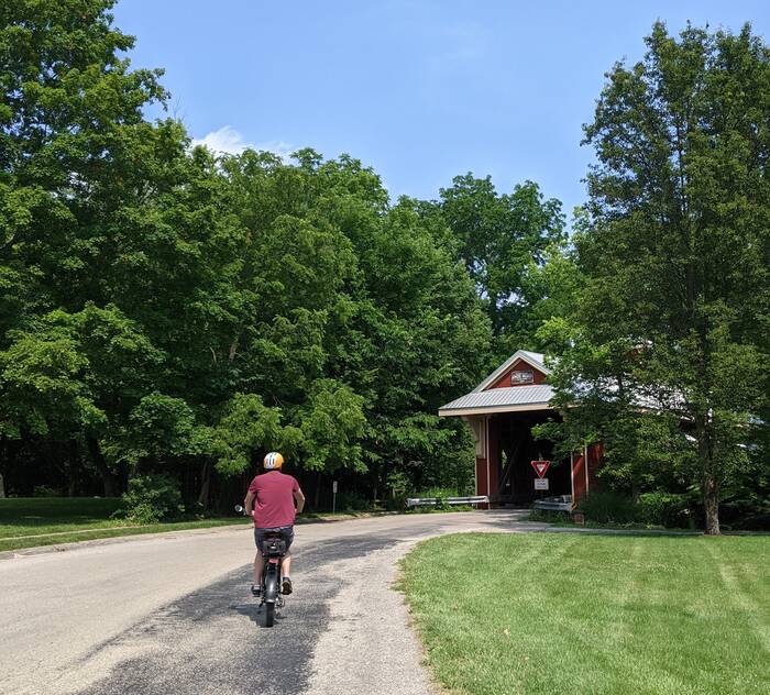 View from inside the covered bridge