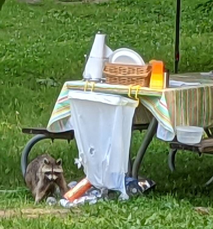 Back at camp, our neighbors had left their campsite for a few hours, leaving the busboy to do the cleanup.