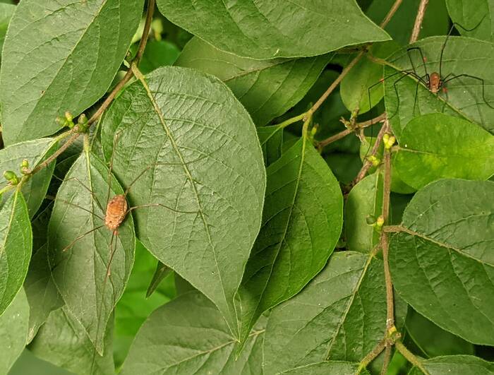 I was kind of mesmerized by the many daddy long legs that patrolled the bush behind us. I guess I never really noticed them out in the actual wild before. I've mostly observed them on the inside walls of tents and such.