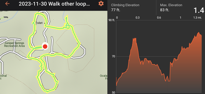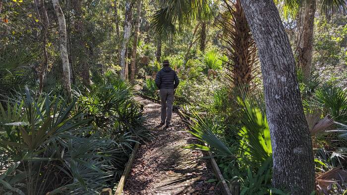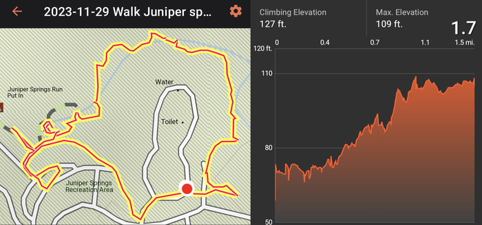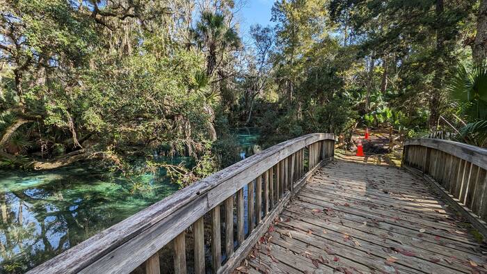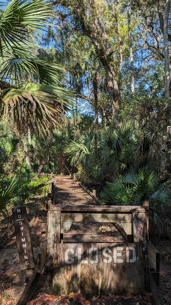 Most of our 4-day stay at Juniper Springs was quite cool (upper 50s/low 60s in the day, 40s at night), but it was pleasant enough when the sun came out. The springs were beautiful, although we went a little rogue and walked on closed boardwalk and bridge ruins so that we could see some of the springs. We have found that many wooden boardwalk and bridge structures in the South seem to close for years at a time, waiting for the elusive Blue Moon Maintenance Crew to arrive.