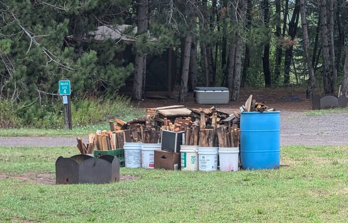 The next couple of days were pretty rainy, so we mostly stayed inside. One of our amusements during this time was watching the stockpiling of firewood by one of the tent-camping neighbors: