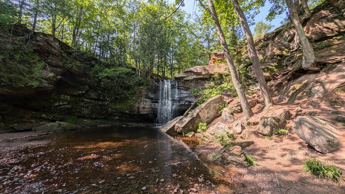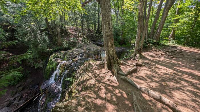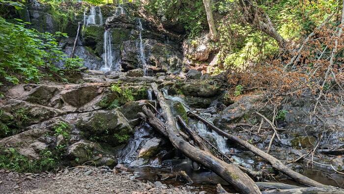 Monday was finally sunny again, although quite cool (mid 60s). We decided to walk a nearby trail to Hungary Falls. It was a short but pleasant trail with several waterfalls.