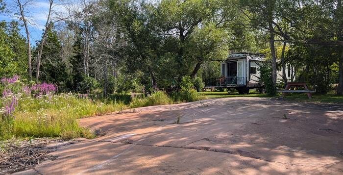 We stayed at a family-owned campground right in town and right on the shores of Georgian Bay. Our campsite took a little finagling to get into, due to the unique rocky terrain and mischievously placed trees on our site, but the view was amazing! One of our neighbors came over with a can of beer to watch us back in and to offer moral support. Even the owner came by to watch, as she doubted we would be able to get into the site.