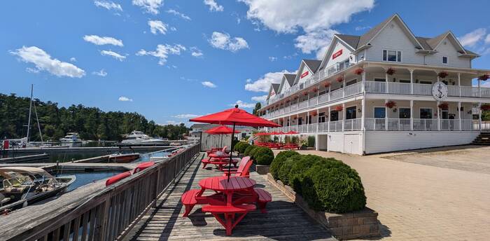 Technically, you can buy a few very expensive groceries at the town's general store, and you can also put $8/gallon gas into your car at the store's boat dock, but generally, residents usually make the drive into the closest town of Sudbury (over 100 km away) for such necessities. Who would live here, you might ask? The answer is mostly retirees and those who cater to the wealthy boaters (cruisers on the Great Loop Route) that make a stop here as well as wealthy corporations who host corporate retreats at the exclusive Killarney Mountain Lodge. There's also a fair amount of tourist traffic from the popular Killarney Provincial Park a few kilometers away.