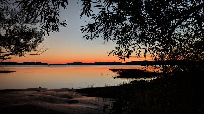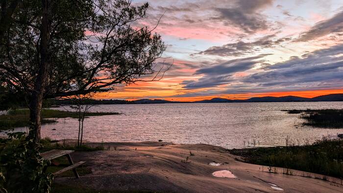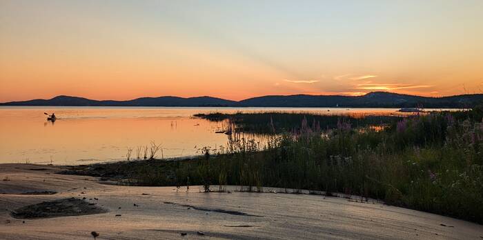 That evening, we enjoyed a beautiful sunset from our deck as the people in canoes, kayaks, and paddle boards made their way back to camp.