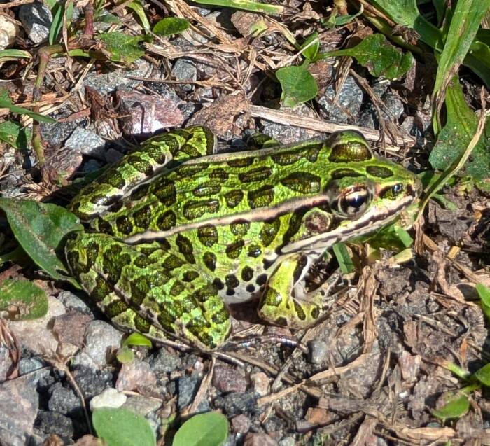 We encountered a biblical number of these northern leopard frogs on the campground "road"