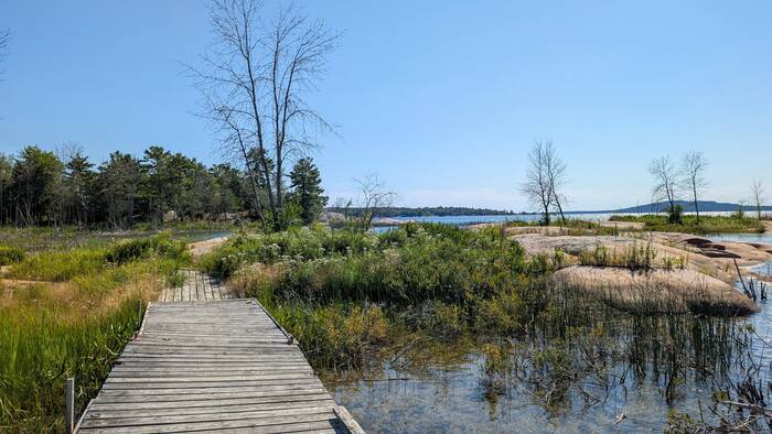 Pond on the left, Georgian Bay on the right