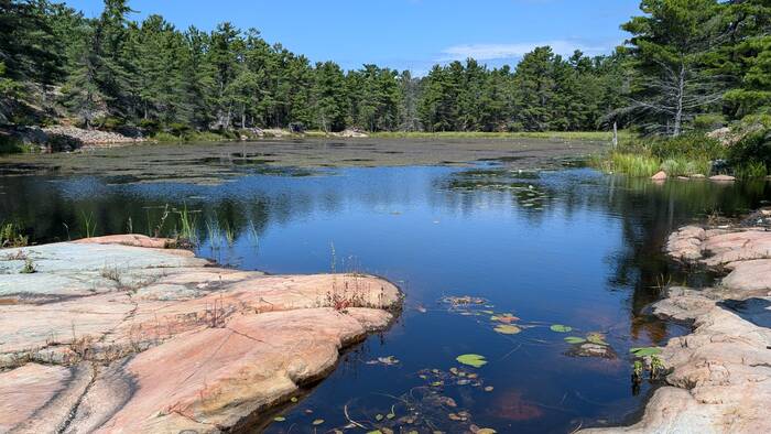 This pond would empty into Georgian Bay (in the background), if it weren't for a strategically placed beaver dam
