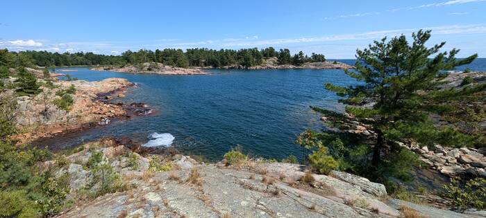 Wind notwithstanding, we really enjoyed our stay in Killarney. Julie had originally booked this location because of its close proximity to Killarney Provincial Park, as the campsites at the provincial park were notoriously difficult to book and there were only a small number of sites that would have been appropriate for our size trailer anyway. We had every intention to go to the provincial park, but you now have to obtain a permit online ($18/car) which only gives you access to one particular part of the park. It seemed too complicated to figure out where we wanted to go and when. So, when we found such great scenery here in Killarney for free, we just never made the effort to go to the provincial park.