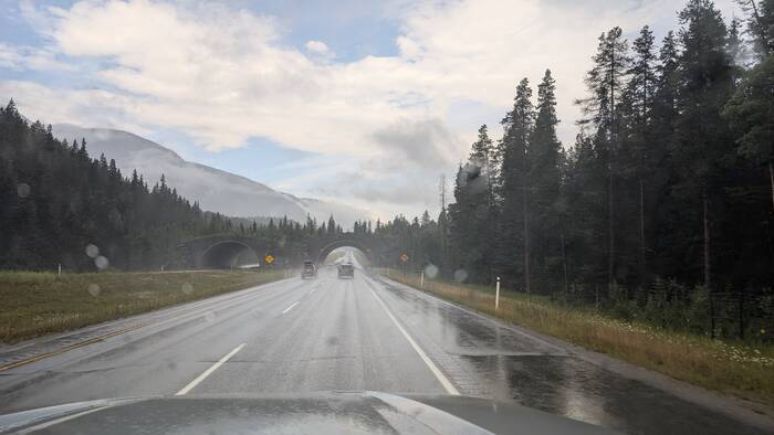 The drive was mostly rainy with some breaks in the clouds here and there. Banff National Park has several of these wildlife bridges over the Trans-Canada highway.