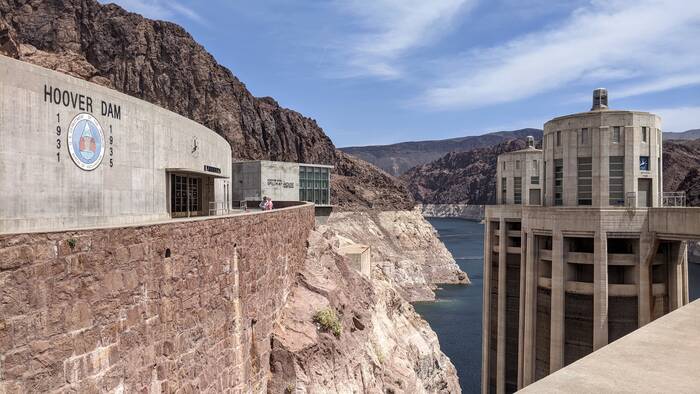 Hoover dam straddles the Nevada-Arizona state line. (Nevada to the left; Arizona to the right)