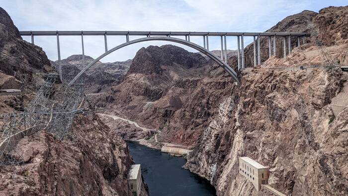 The Mike O'Callaghan–Pat Tillman Memorial Bridge, opened in 2010 to bypass Hoover Dam. This is the bridge we drove over a couple of days ago.