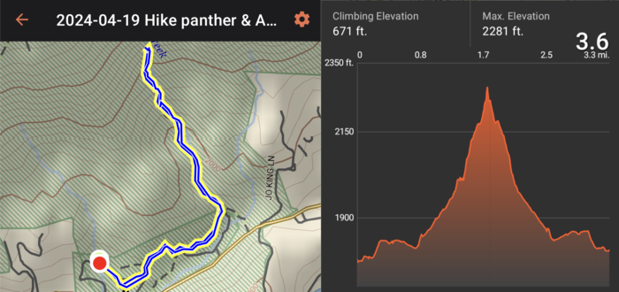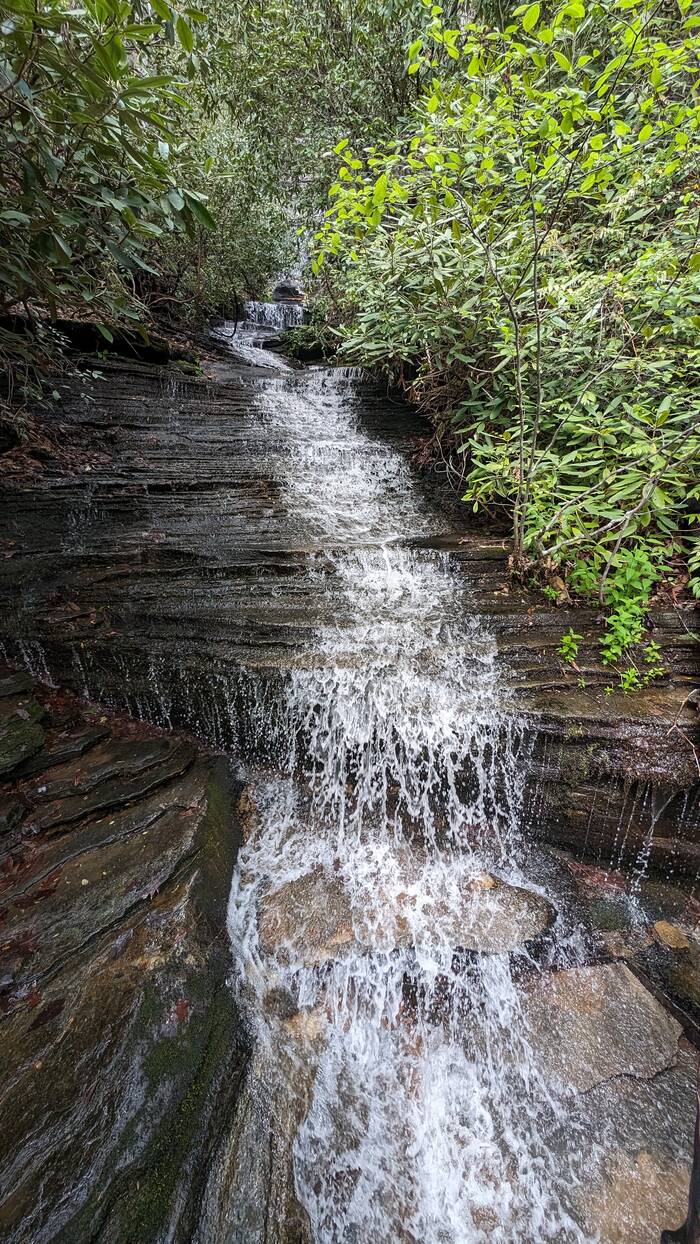 The afternoon turned out to be mostly sunny and pleasant, so we took a hike off the campground to Panther Falls and Angel Falls (3.6 miles).