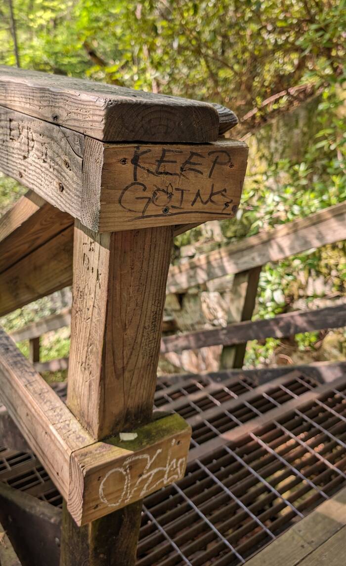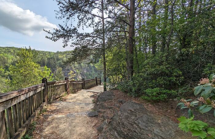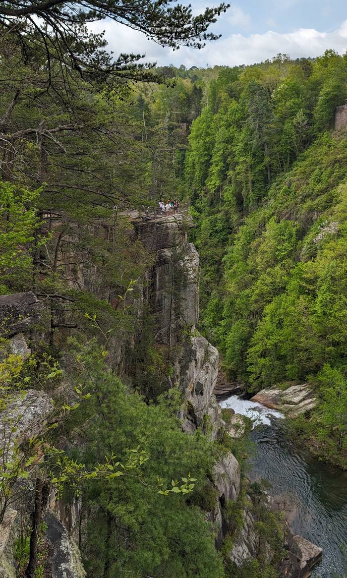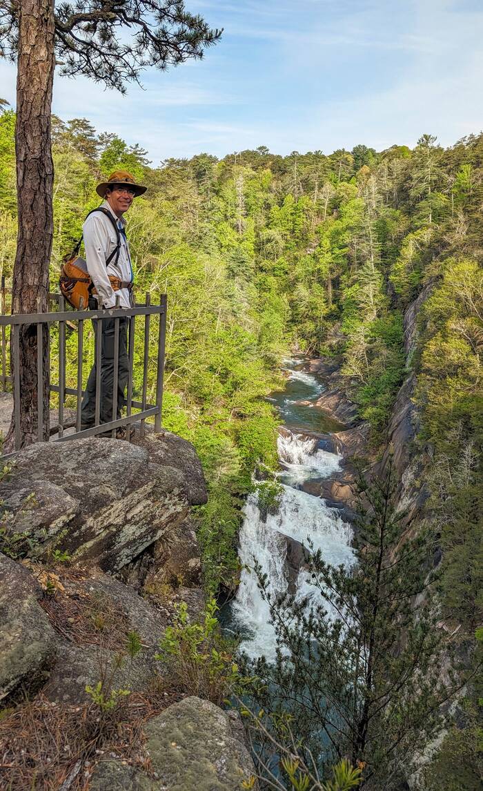 On Saturday, we went to Tallulah Gorge State Park (because we had not yet seen enough waterfalls). Bonus--extra water was released this weekend from the upstream dam for "aesthetic purposes". The trail we took was only 3.3 miles, but the 500 vertical feet of stairs to the bottom gave us a good workout.