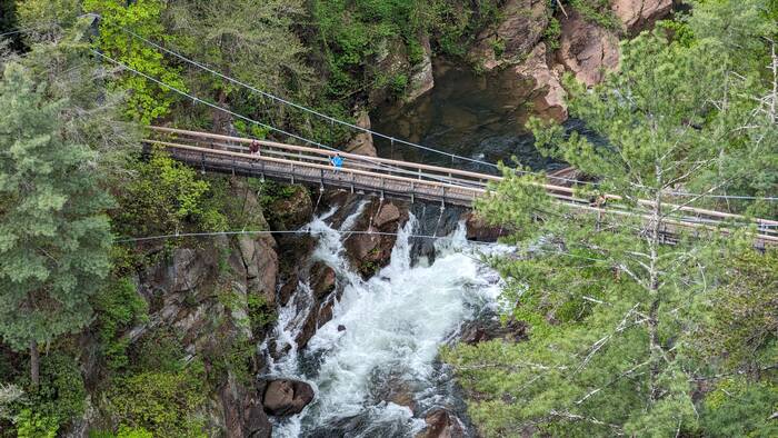The swinging bridge over the gorge