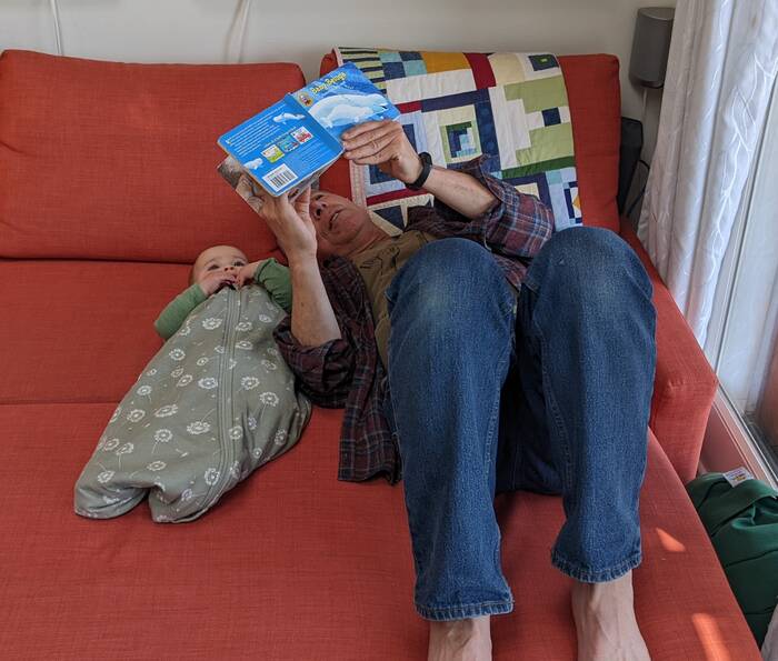 Grandpa reading a bedtime story to Rosa