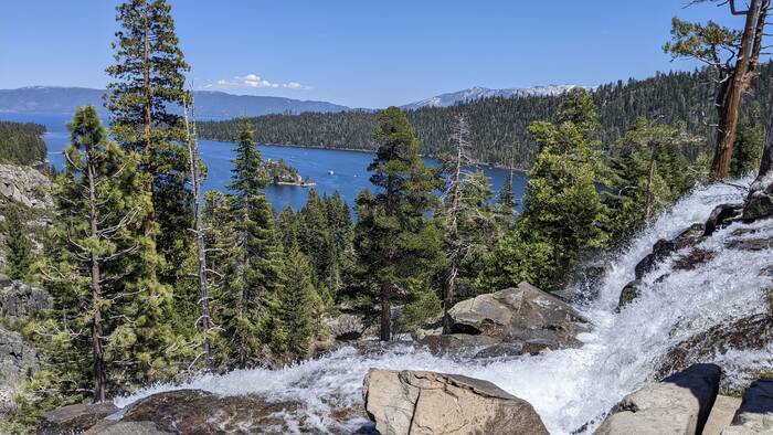 Look around the same spot with views of falls and Emerald bay