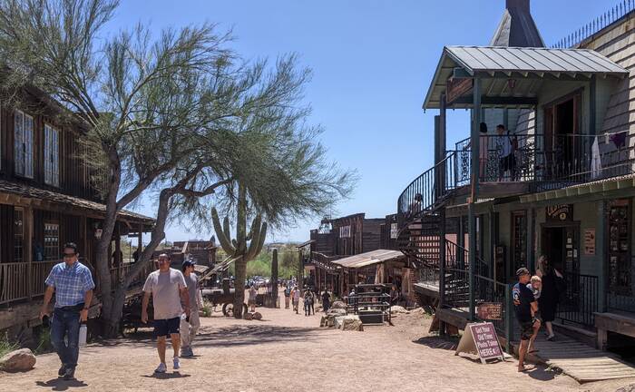 In Tortilla Flat, we enjoyed some prickly pear gelato and observed a pretty hokey "gun fight". Color us unimpressed. (The gelato was good, though.)