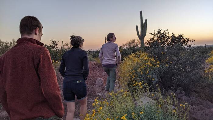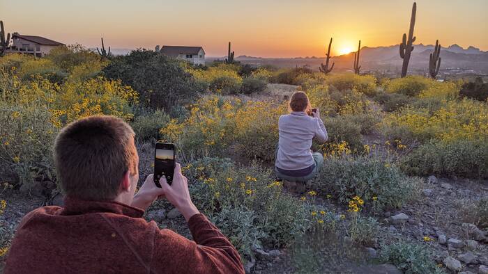 Julie taking a picture of Alan taking a picture of Audrey taking a picture of a sunset.