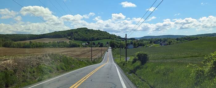 We had one more stop in Pennsylvania on our trek northward. After clear skies for most of the journey, we arrived to gloomy drizzle at our very spacious new campsite in the trees.